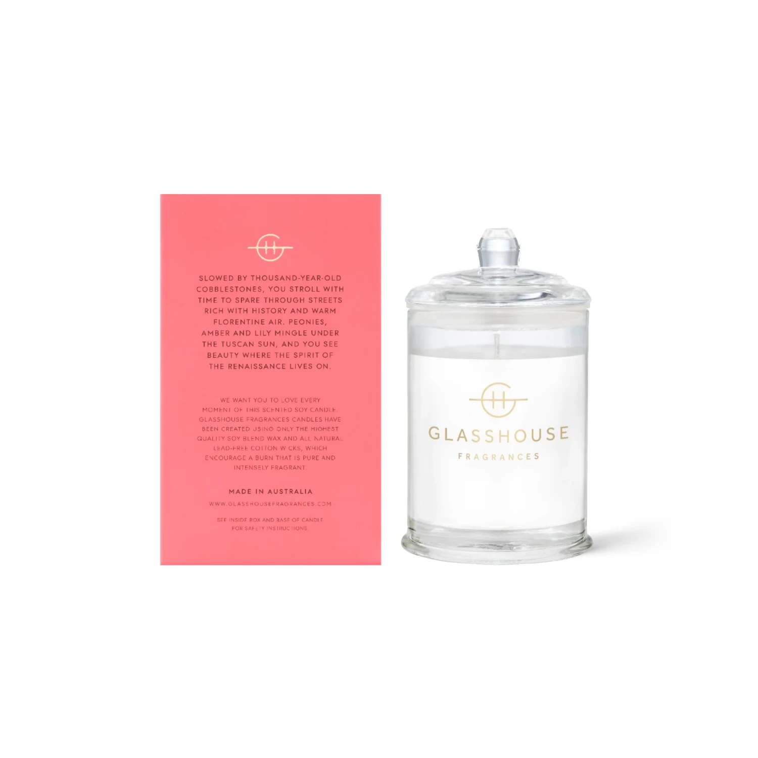 Slowed by thousand-year-old cobblestones, you stroll with time to spare through streets rich with history and warm Florentine air. Peony, amber, and lily mingle under the Tuscan sun, and you see beauty where the spirit of the Renaissance lives on.