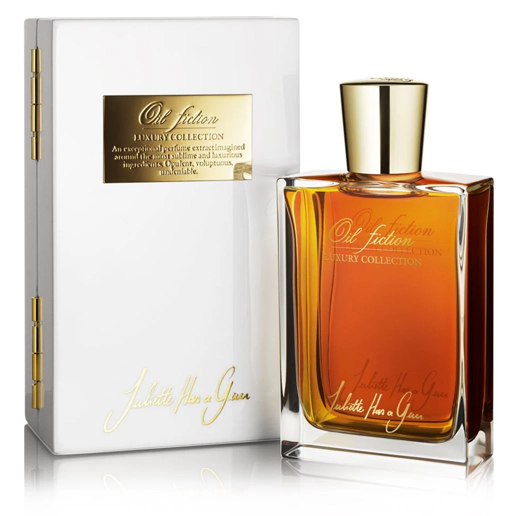 When red gold meets yellow gold. Initially created as a limited edition of 999 examples, its success and sophistication have made Oil Fiction an original and highly sought after perfume. Oil Fiction is a scent that plays with the light and the generosity of spice and earthy floral notes. A voluptuous fragrance. A royal elixir where the red gold fire of Saffron blends with the yellow gold warmth of Amber. The promise of a wild nature revealed with sophistication will charm you and unveil with grace. Oil Fiction tells the tale of an elegant trail, suave and animal. Elegant and sophisticated, the bottle is presented in a bright, modern white lacquered box.